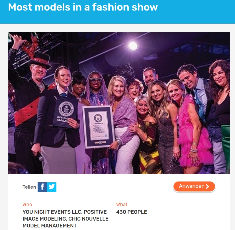 On Saturday, October 1st, models from Positive Image Modeling and Chic Nouvelle, joined forces with You Night Empowering Events to break the Guinness World Record for the "Most Models in a Runway Show." It was our models' way of supporting women diagnosed with cancer.
